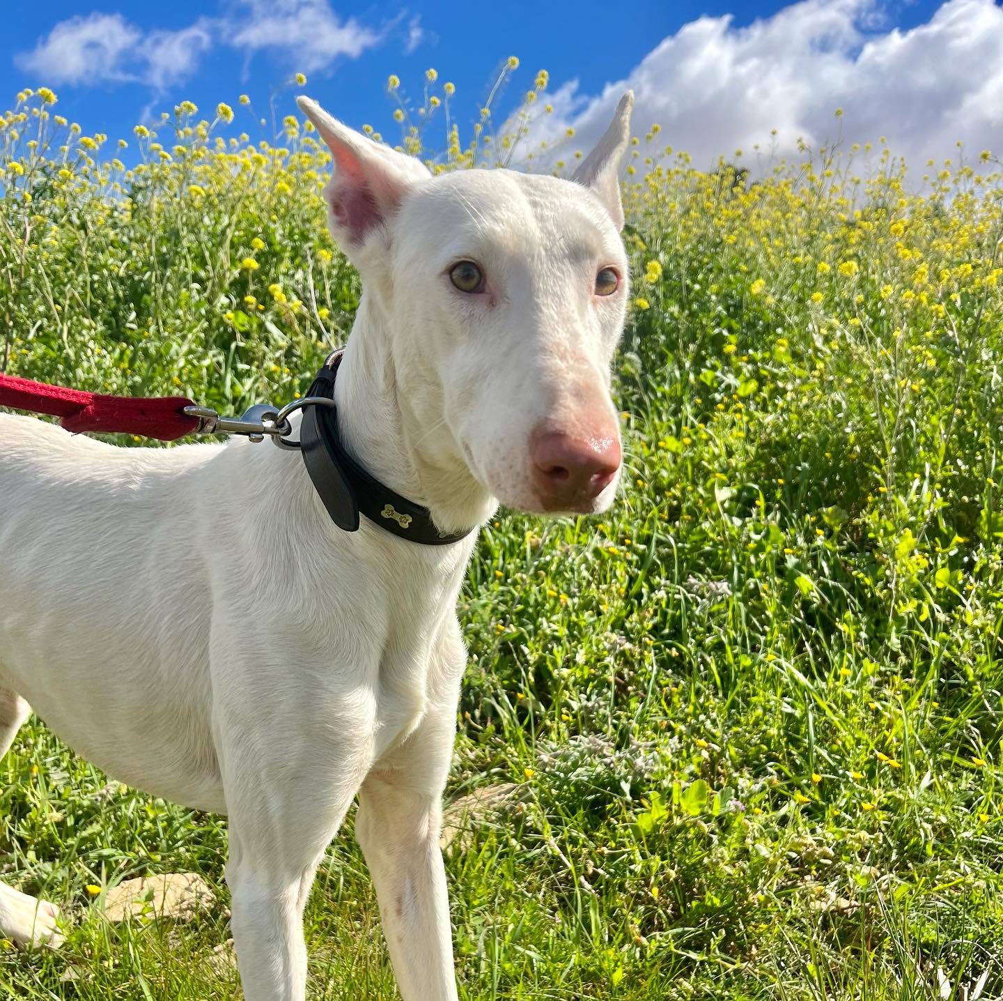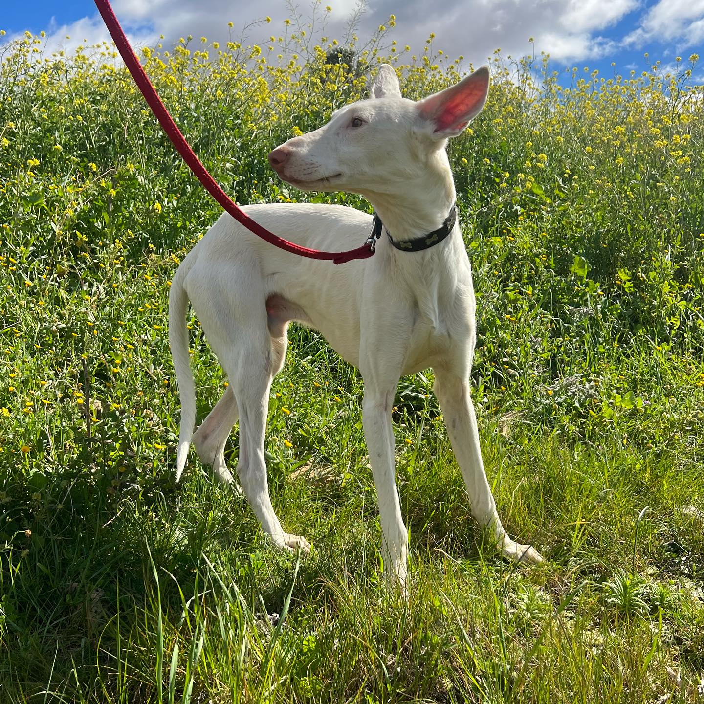 Es súper sociable con otros perretes, también es apto con gatos. Pasea genial con la correa.